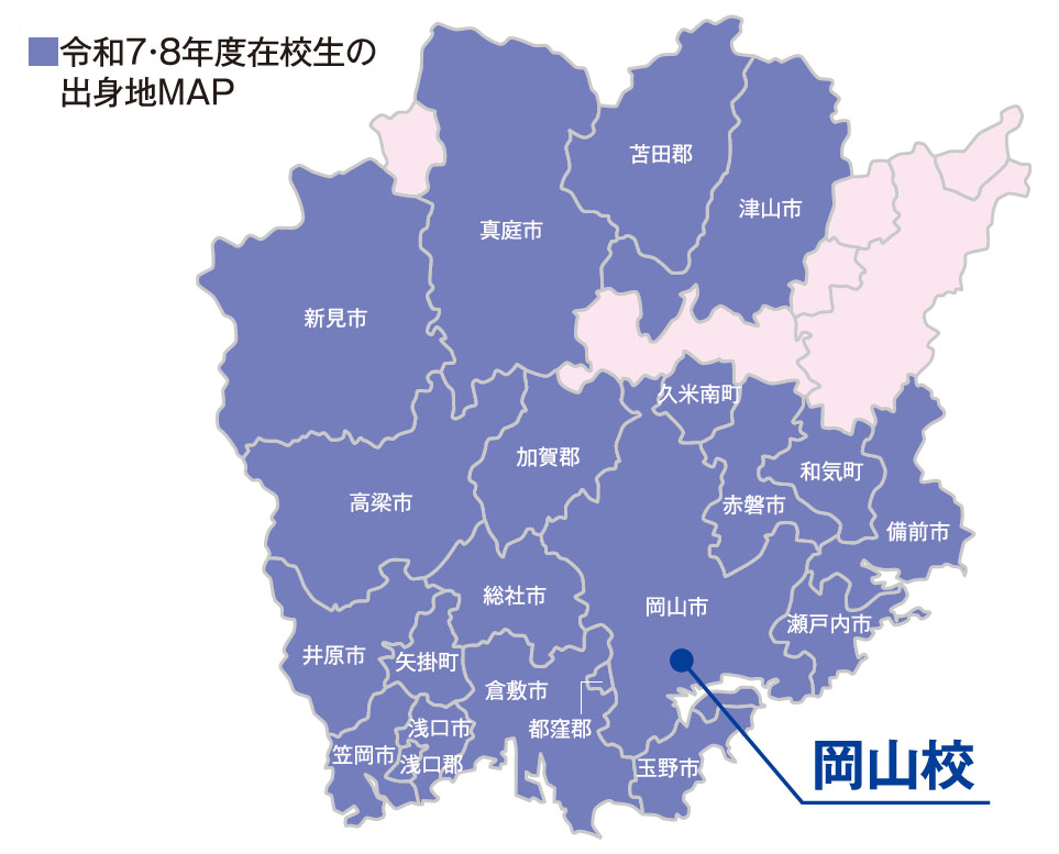 岡山校は、岡山駅や天満屋バスセンターからもアクセス抜群です。