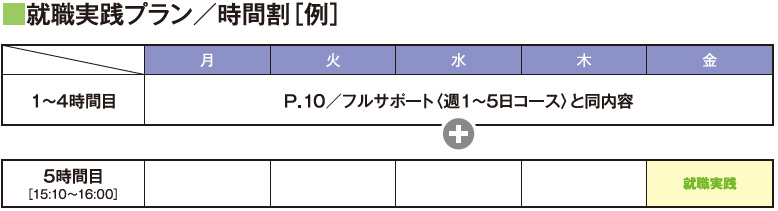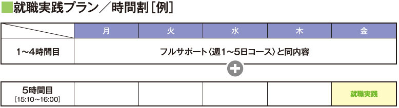 「フルサポート<週1日~5日コース>」の内容にプラスして、就職活動を実践的に支援します。週に1回<年間30回程度>です。