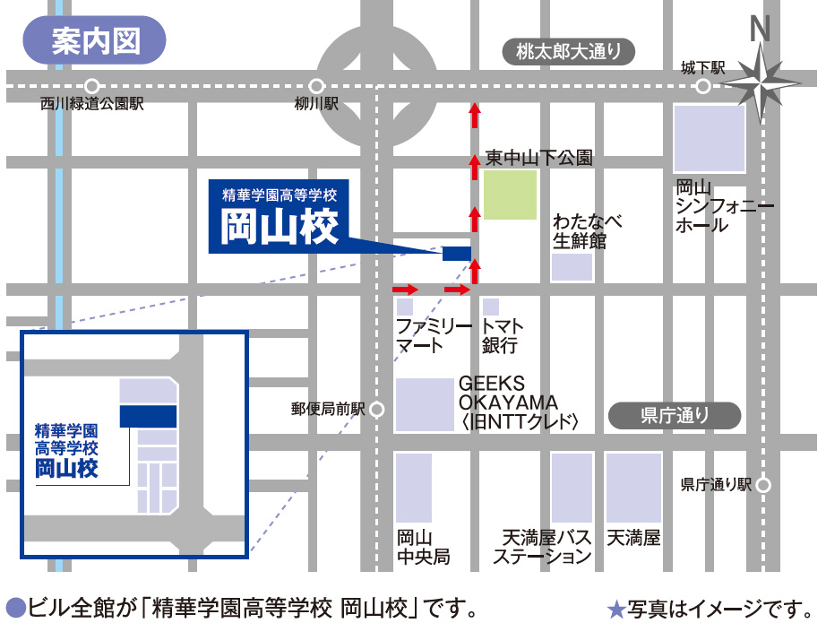 学校法人 山口精華学園 精華学園高等学校 岡山校の「アクセスマップ」です