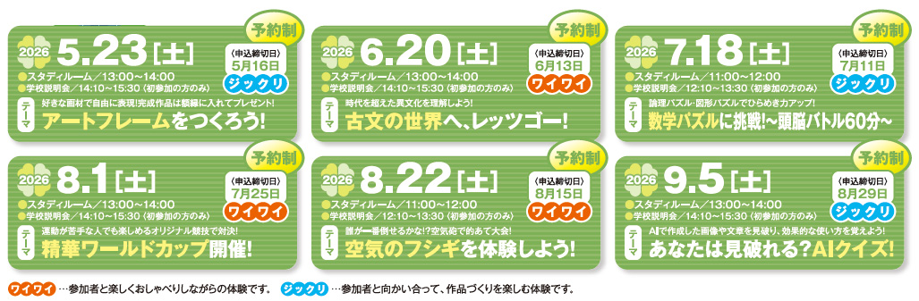 入学への不安を解消し、生徒自身が納得できるまで何度でも参加可能な体験型オープンスクールです。